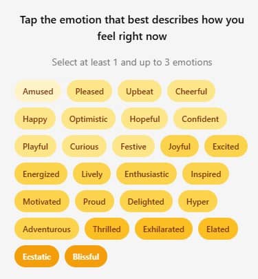 Next, select the emotions you’re feeling in that moment.