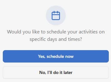 Next, the wizard will ask you whether you want to immediately add the individual physical activities to your weekly schedule. You can skip this and add them later, but I recommend doing it right away.