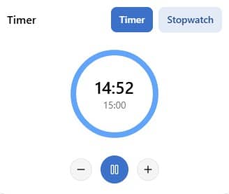 Ale jeśli klikniesz w częśc zaznaczoną na niebiesko, to otworzy się ekran z dedykowanym dla danej aktywności narzędziem - w przypadku medytacji będzie to zegar medytacyjny.