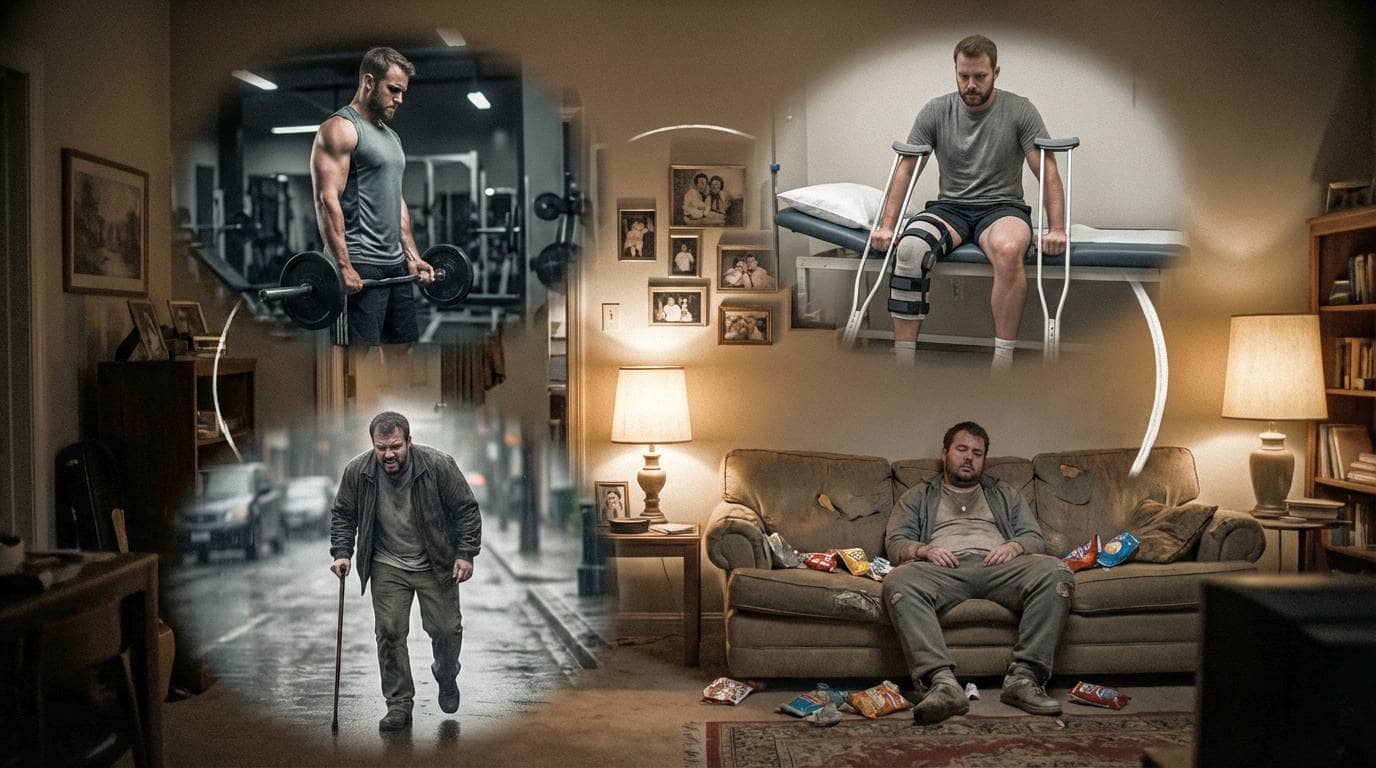 Zaczyna się od jednego urazu kolana, jednej przepukliny, jednego nadwyrężenia barku. Rok później ta osoba nadal nie ćwiczy, przybiera na wadze, traci wydolność — a każda próba powrotu kończy się kolejnym bólem.